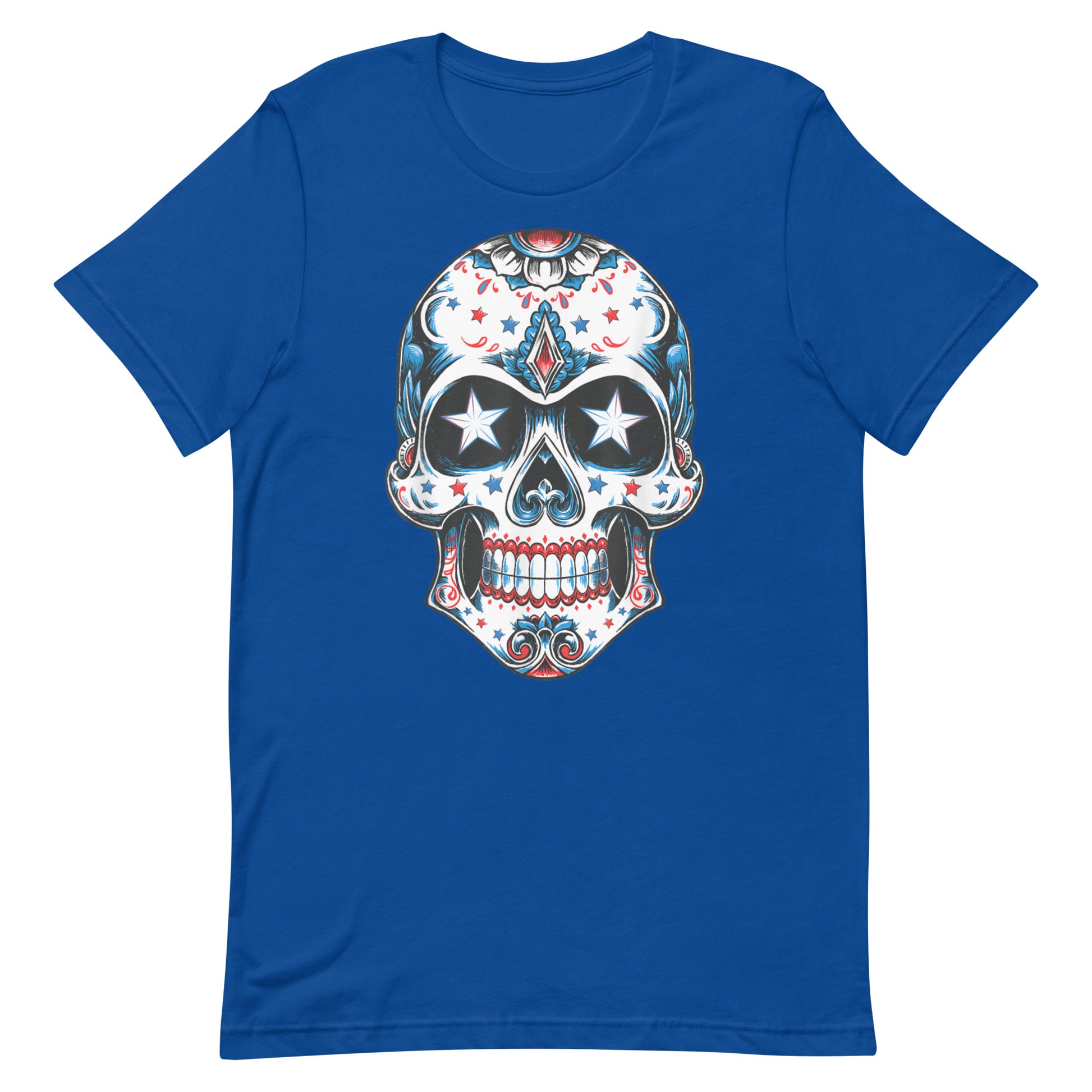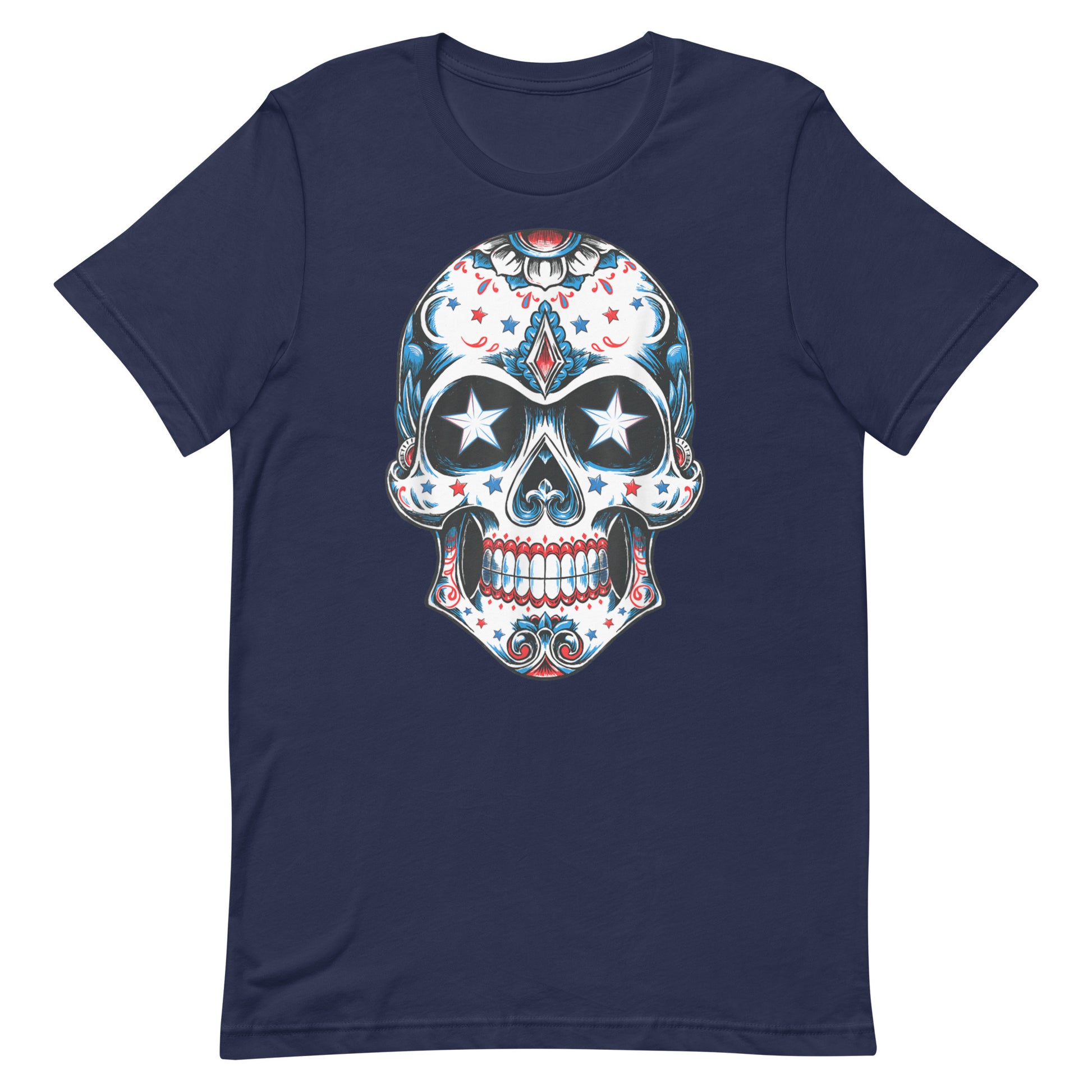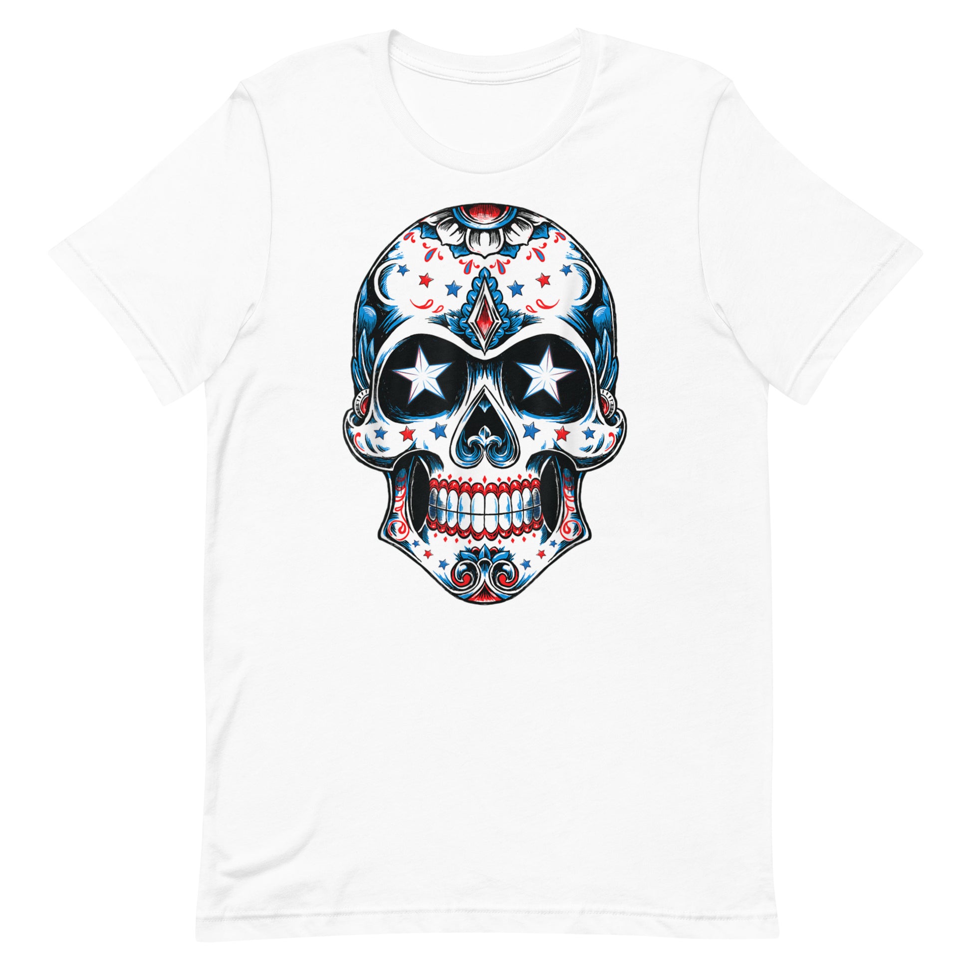 4th of July American Sugar Skull Premium T-Shirts are printed in USA