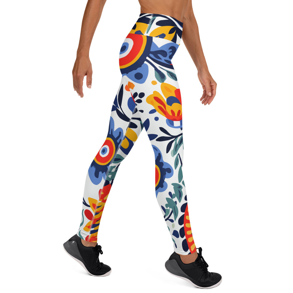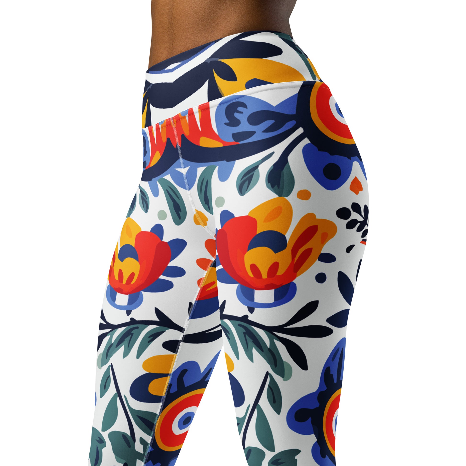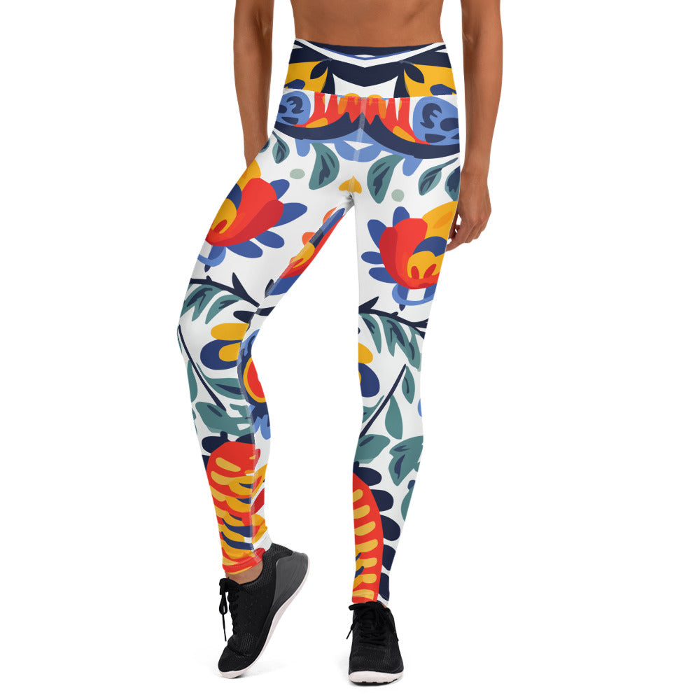 Blue Floral Mexican Pattern Yoga Leggings are printed in USA