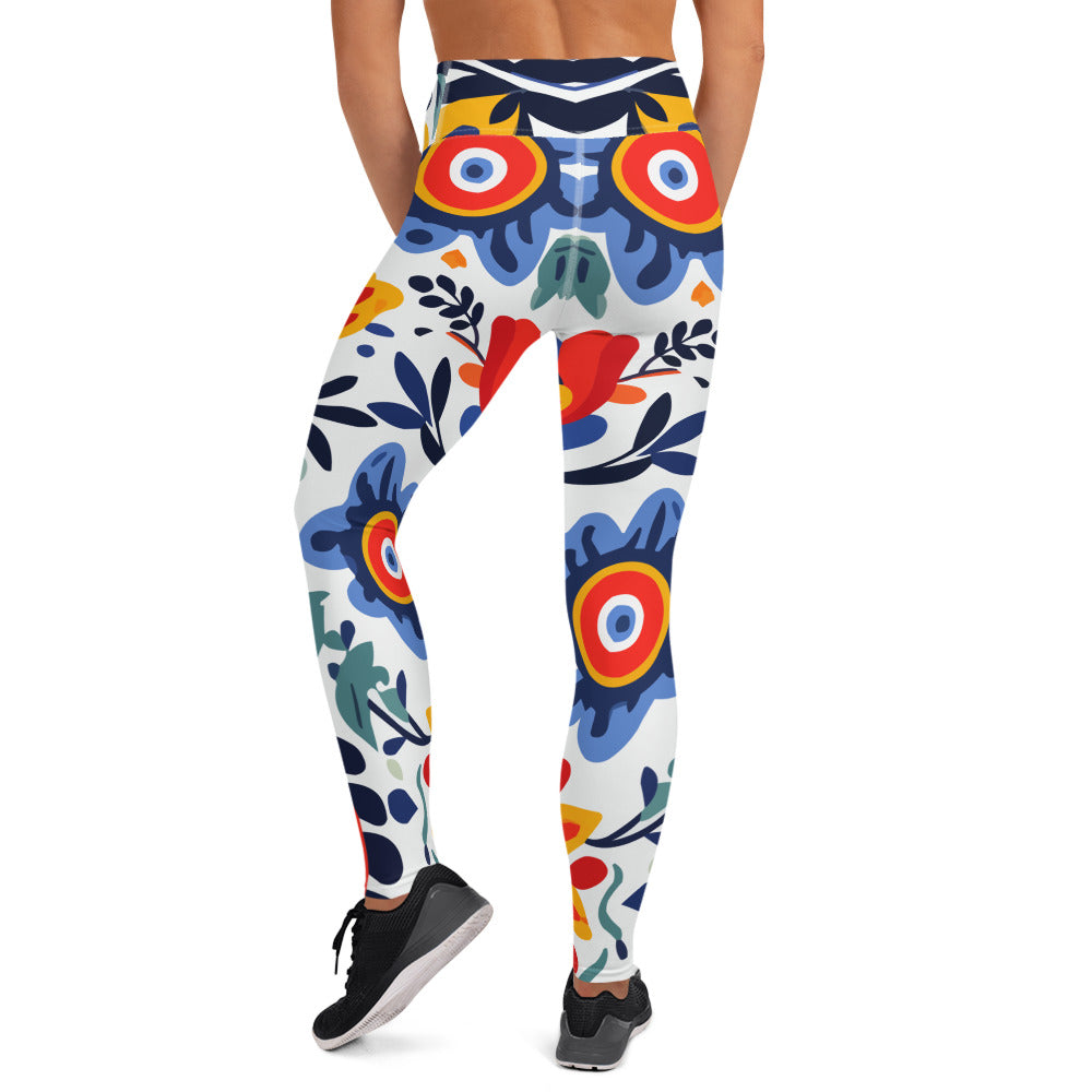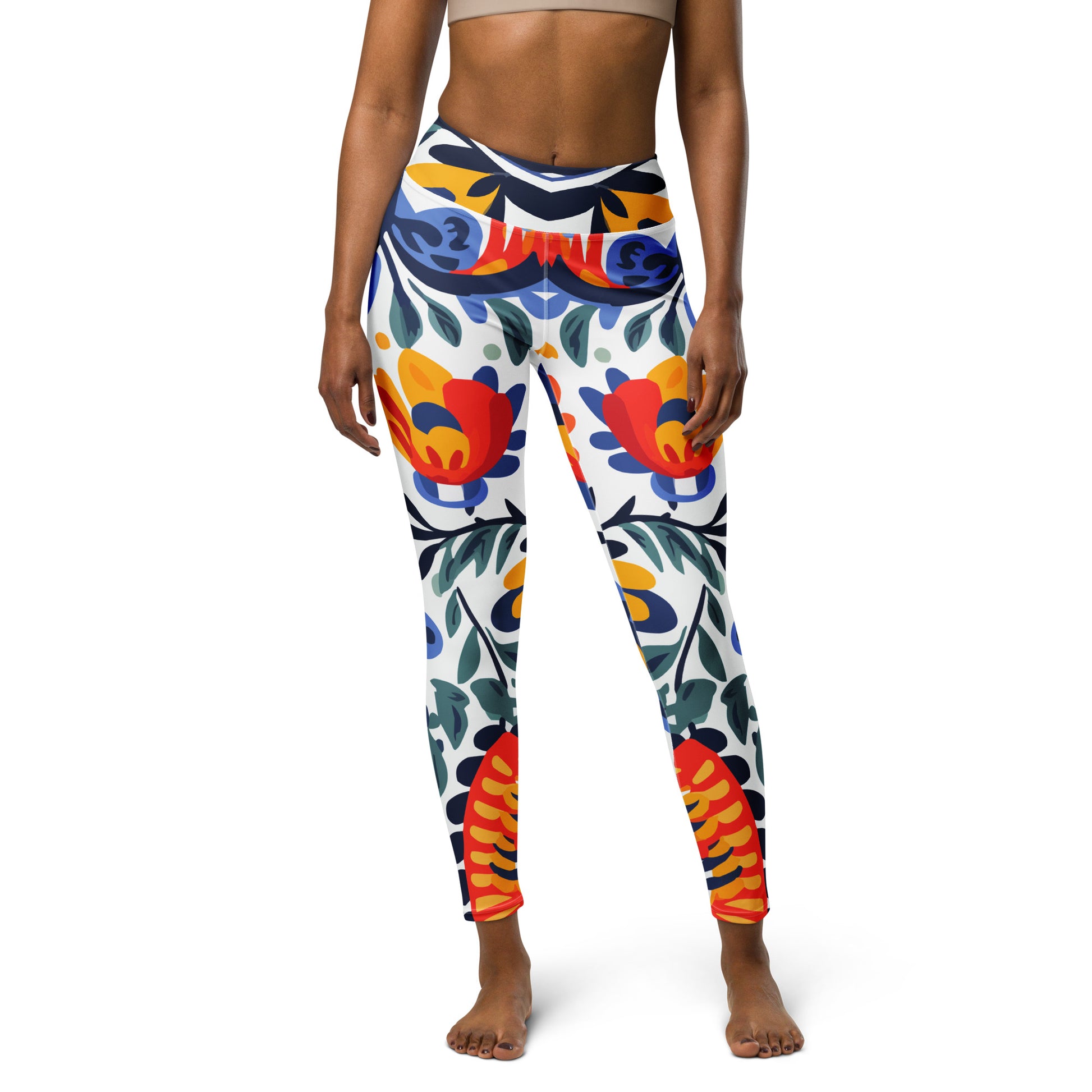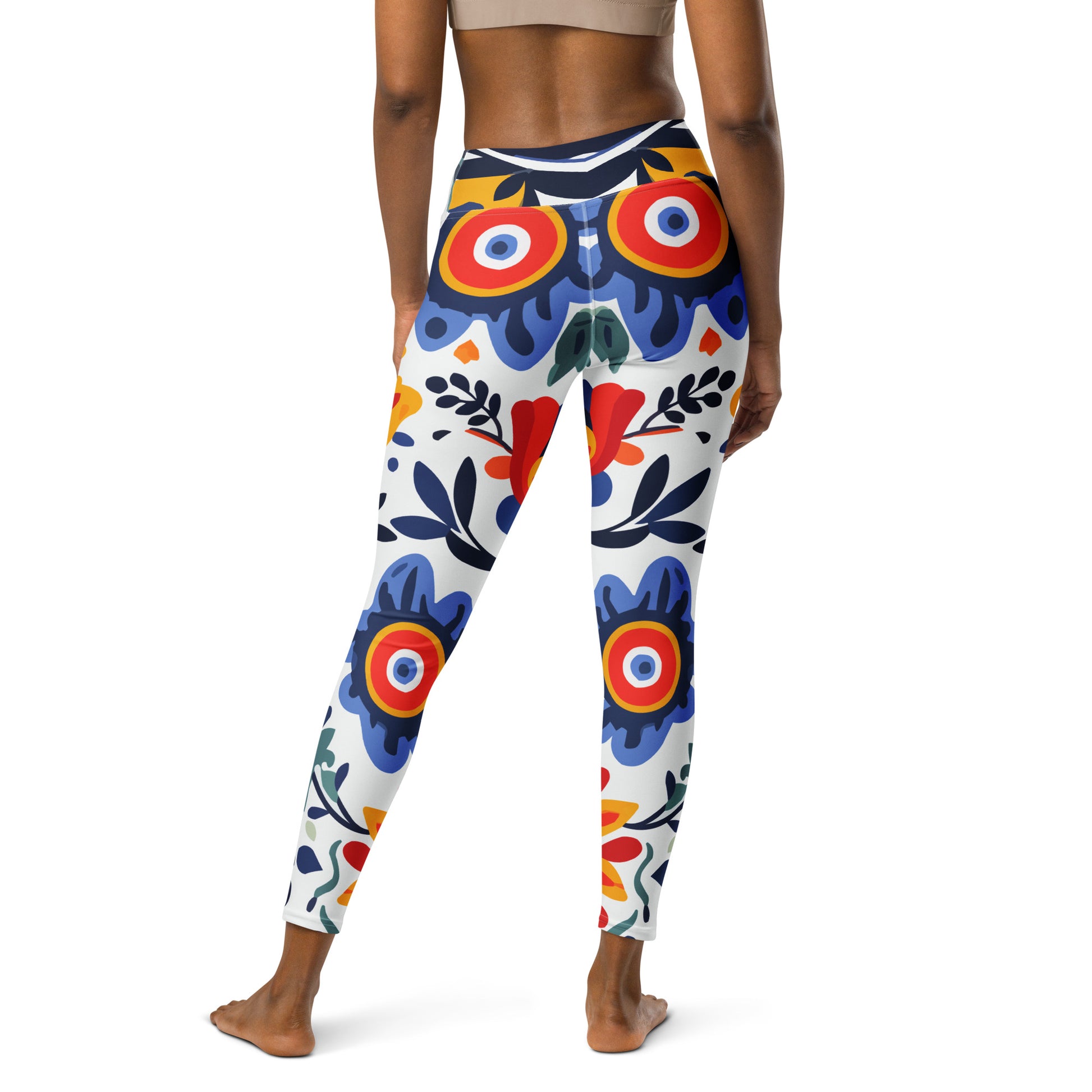 Blue Floral Mexican Pattern Yoga Leggings are printed in USA