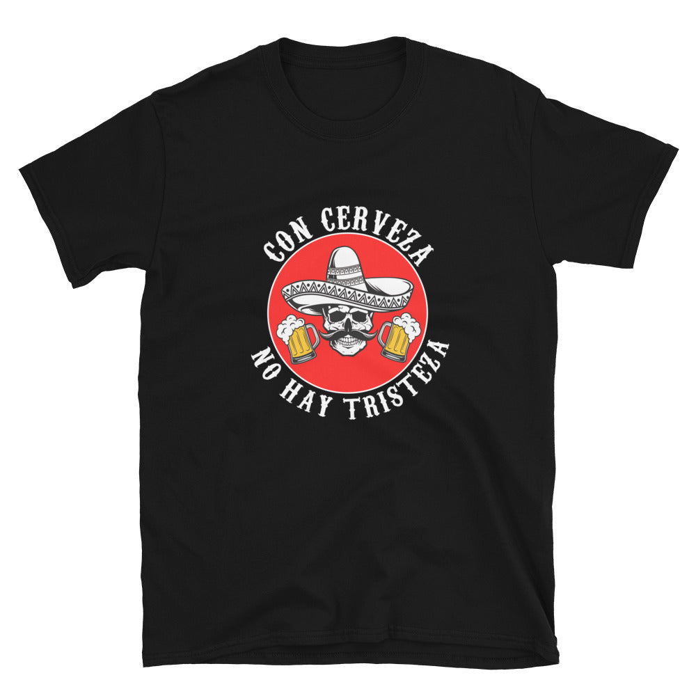 Con Cerveza No Hay Tristeza Unisex T-Shirts are printed in USA