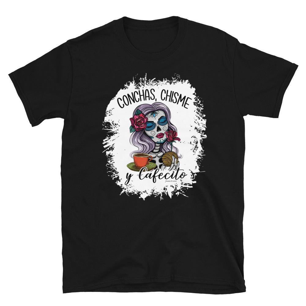 Concha, Chisme Y Cafecito T-Shirts are printed in USA