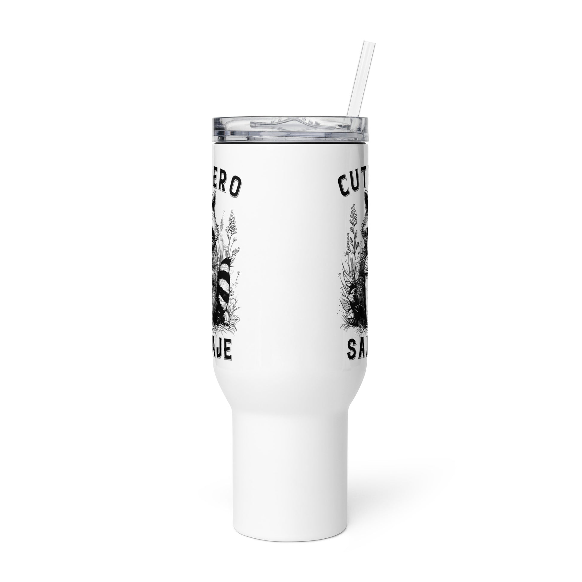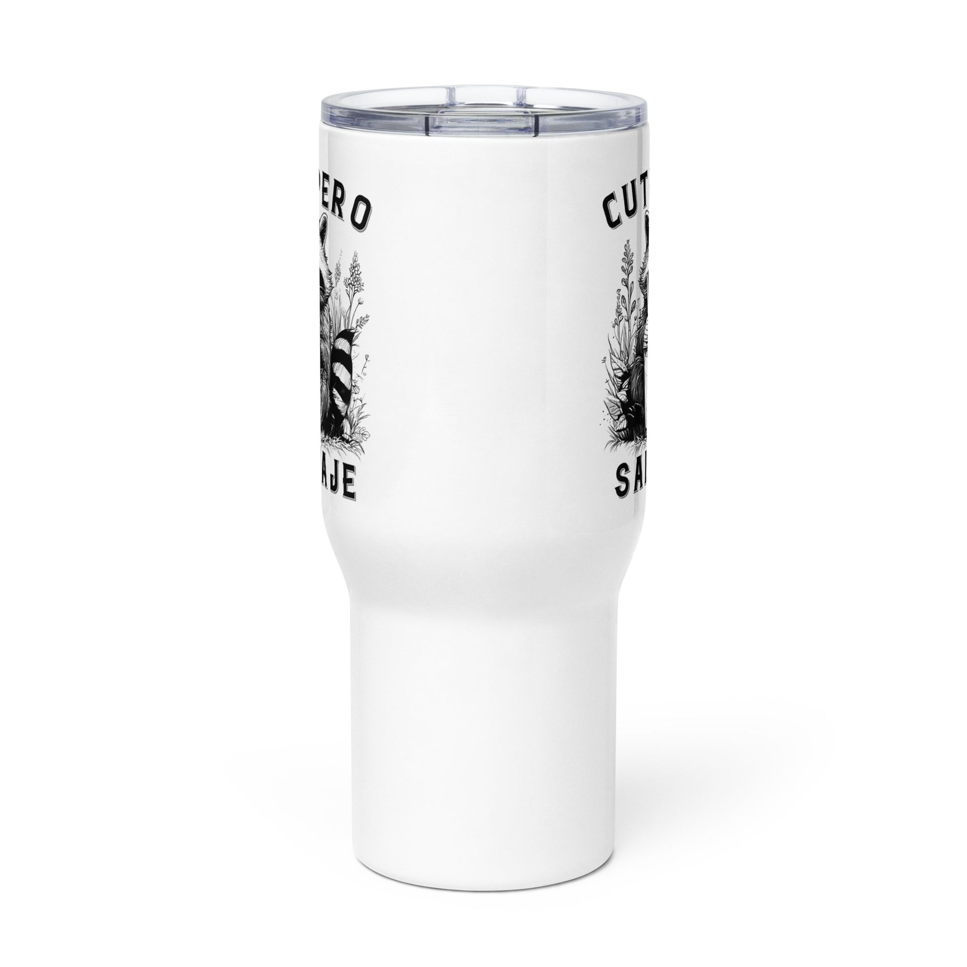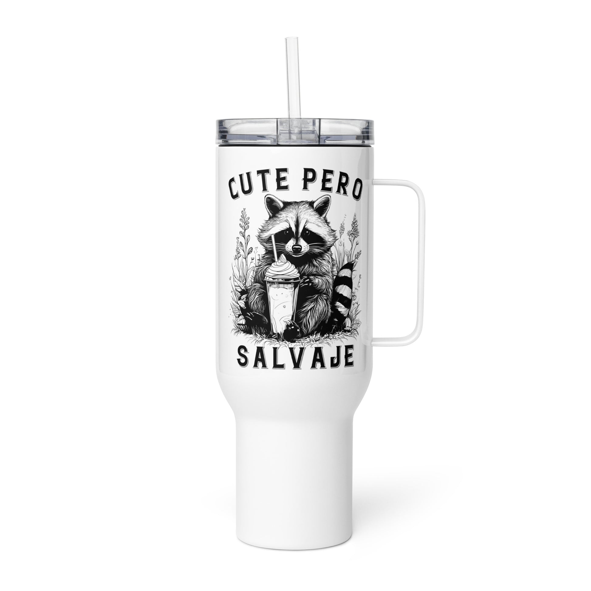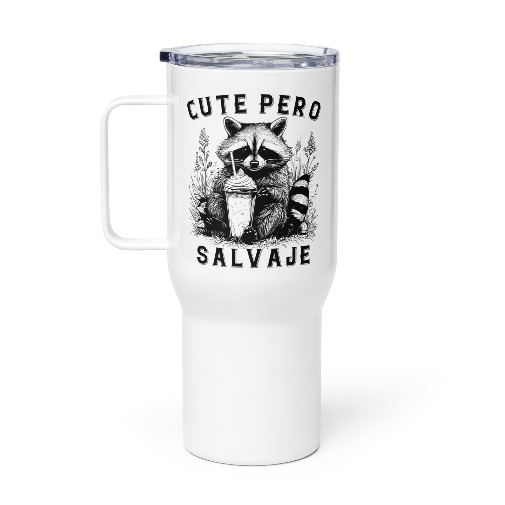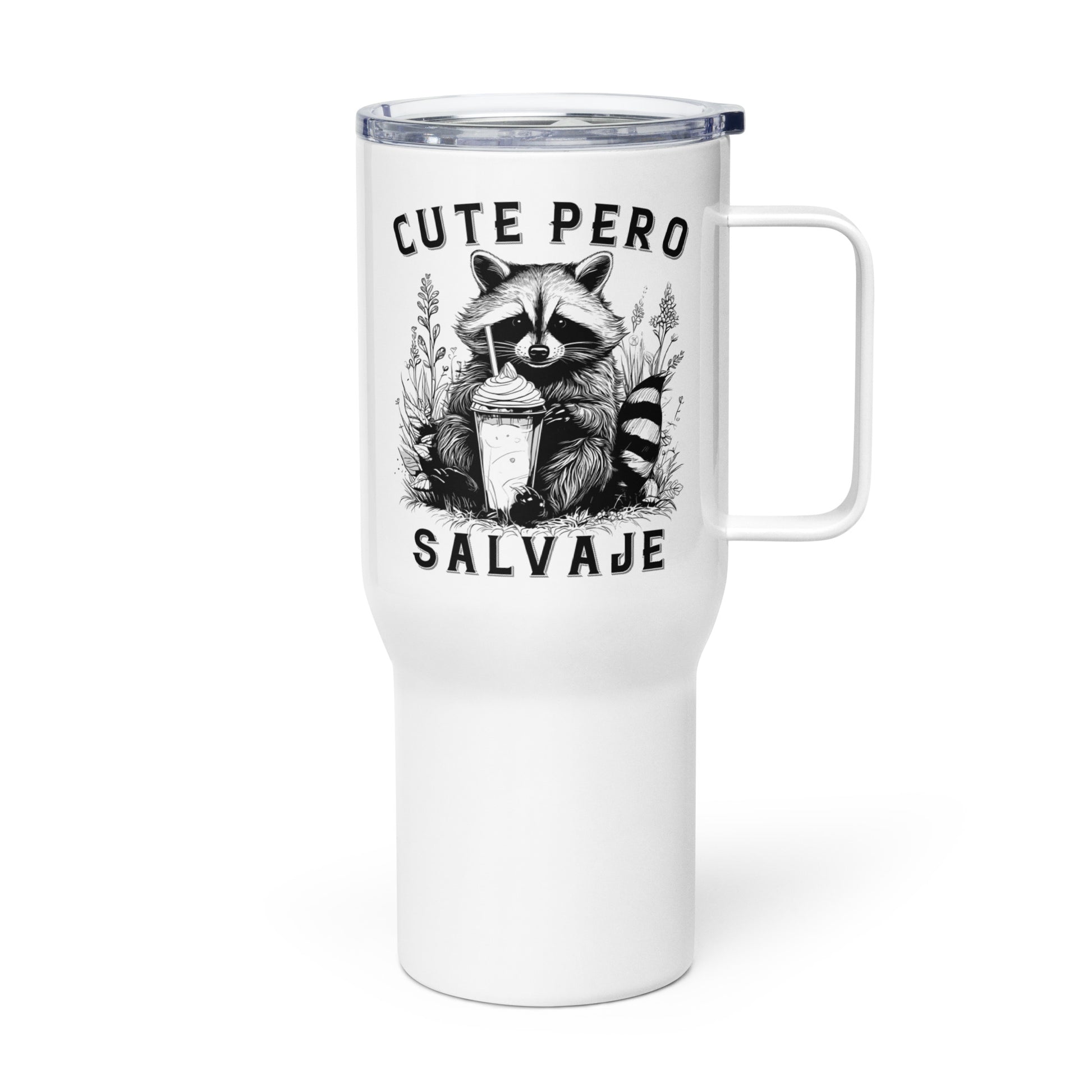 Cute Pero Salvaje Travel Mug with handle for Latinos are printed in USA