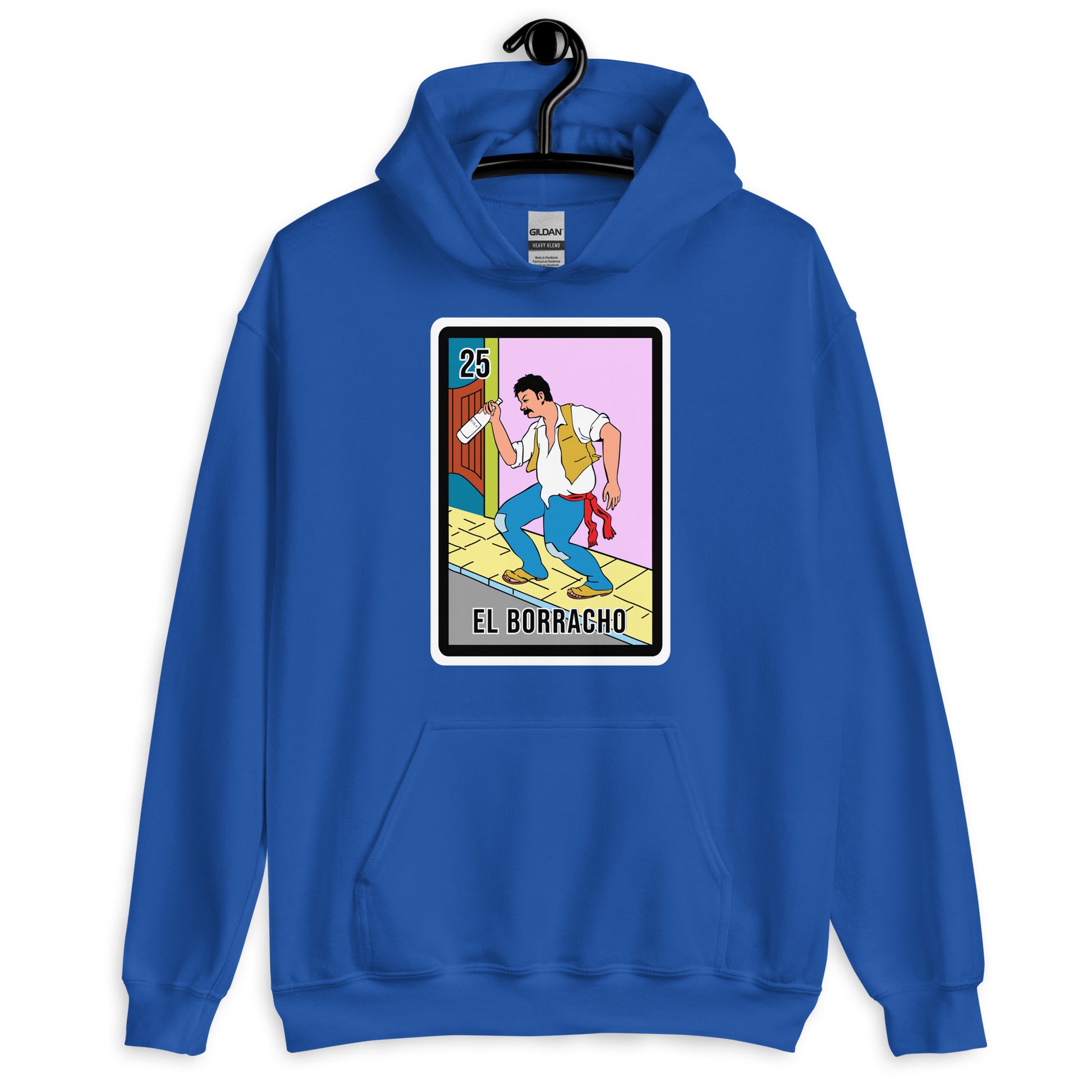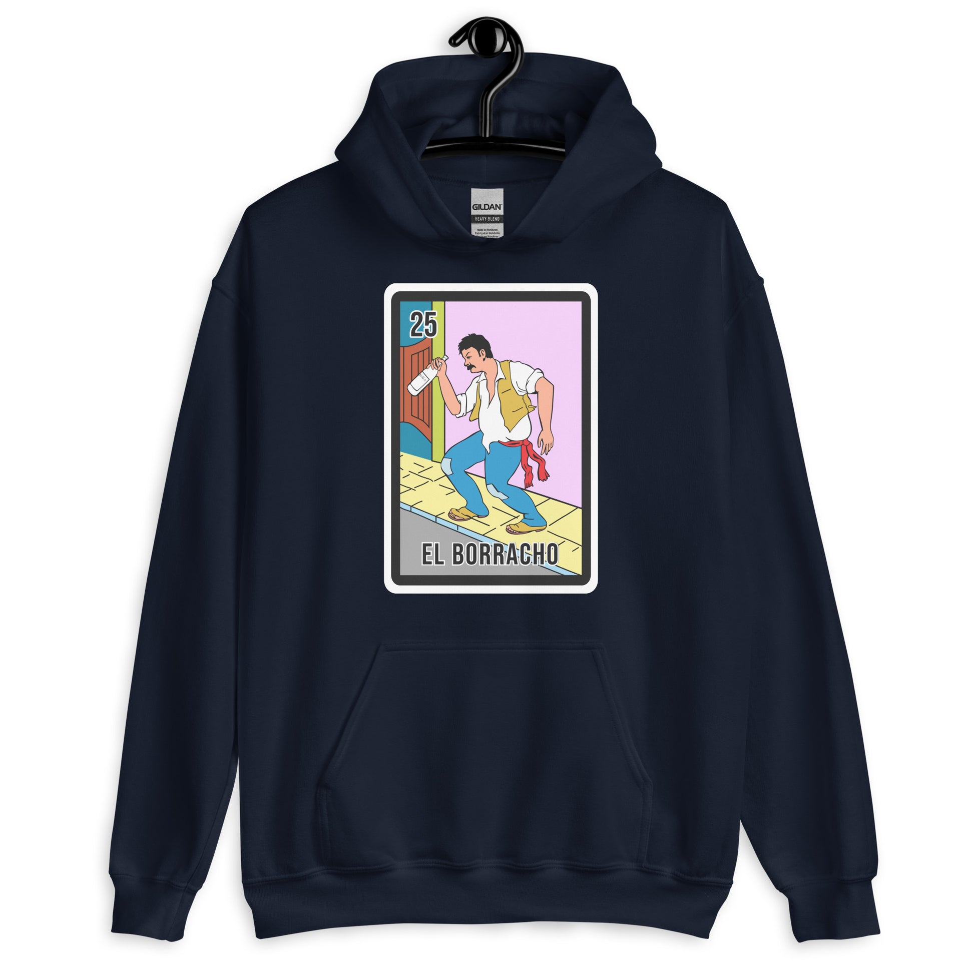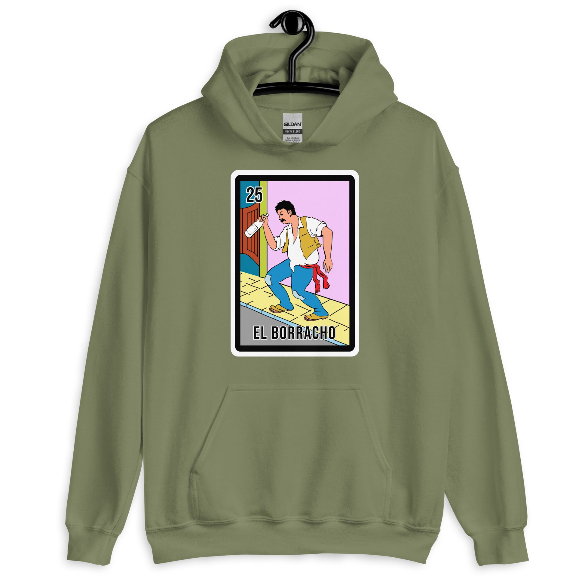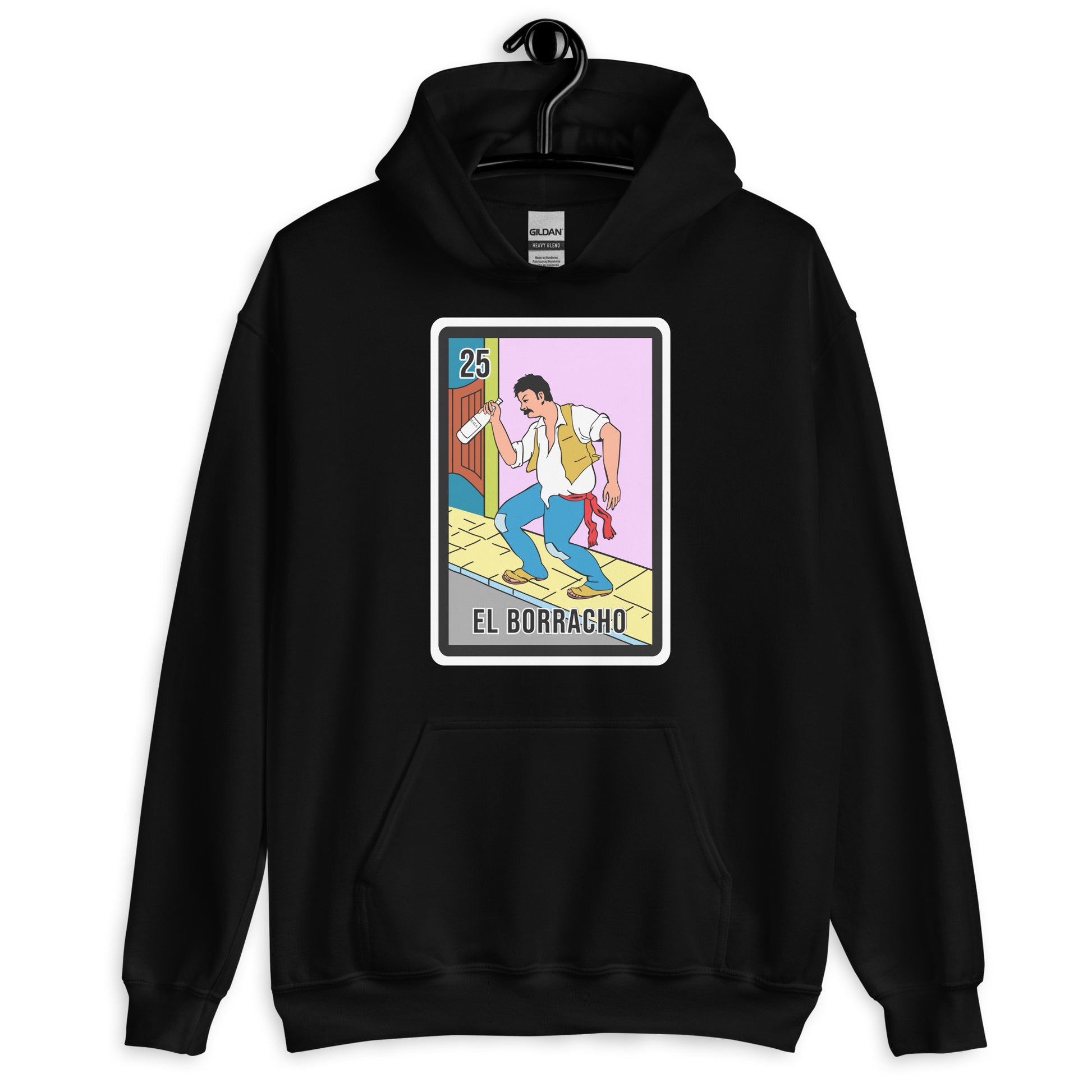 El Borracho Mexican Loteria Unisex Hoodies are printed in USA