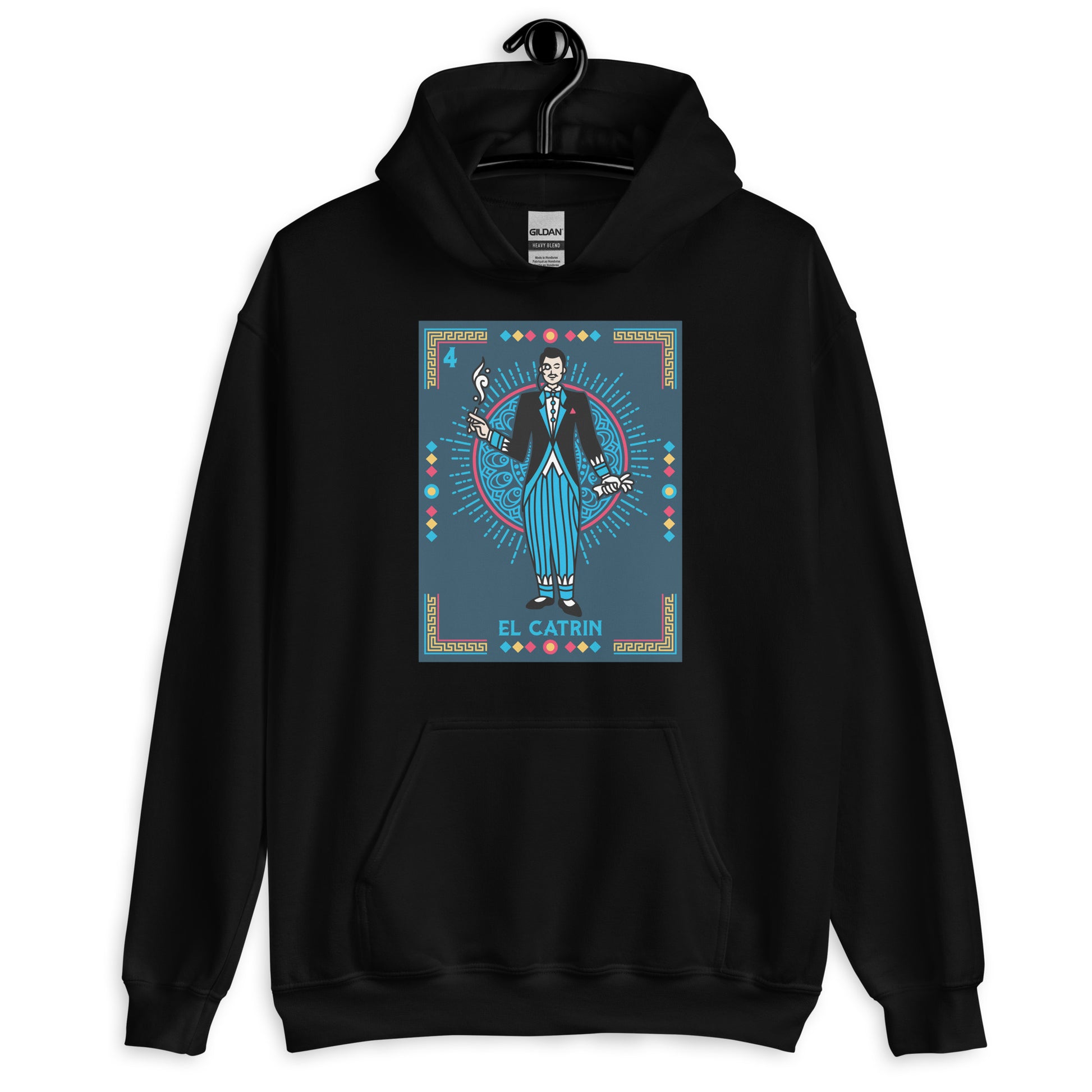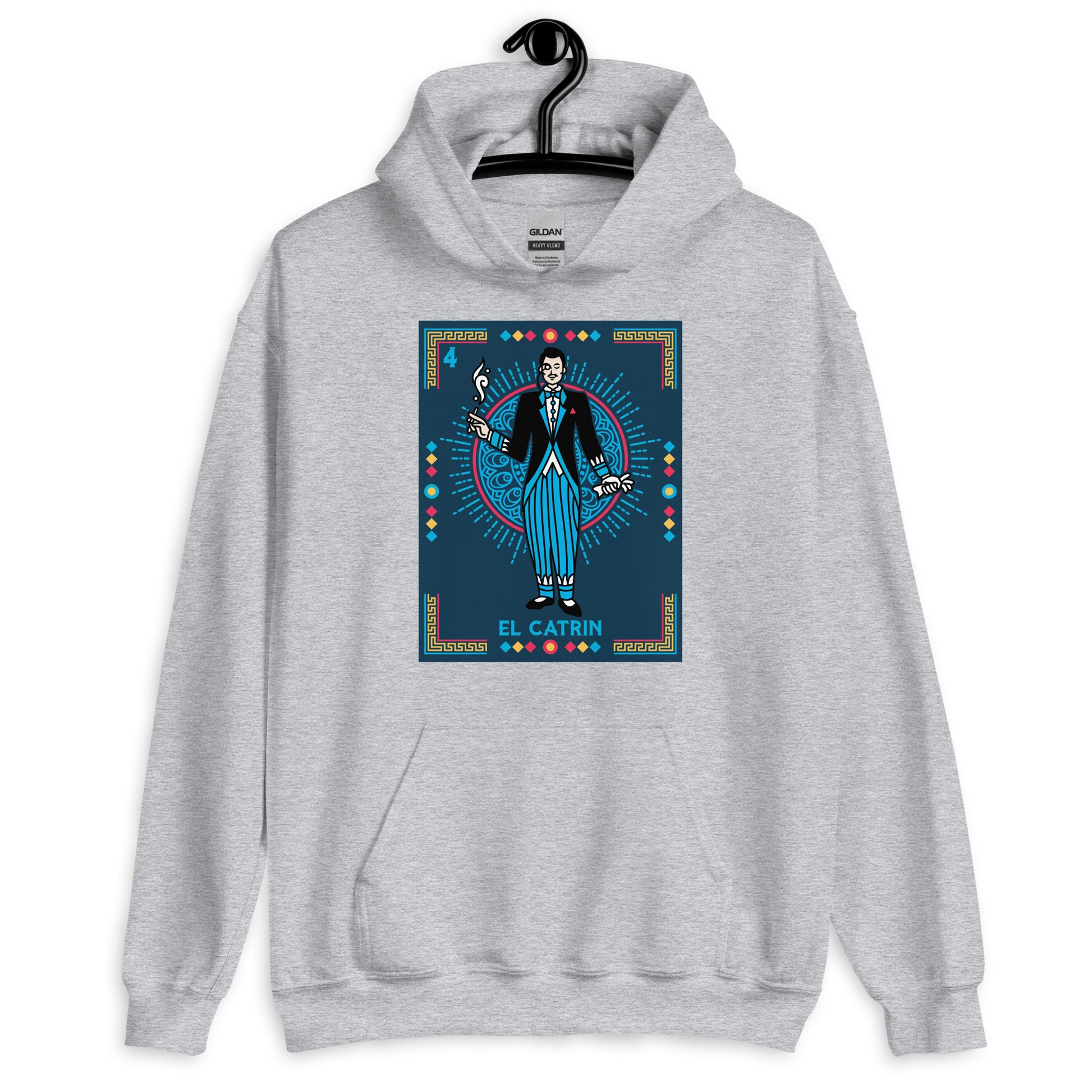 El Catrin Mexican Loteria Unisex Hoodies are printed in USA