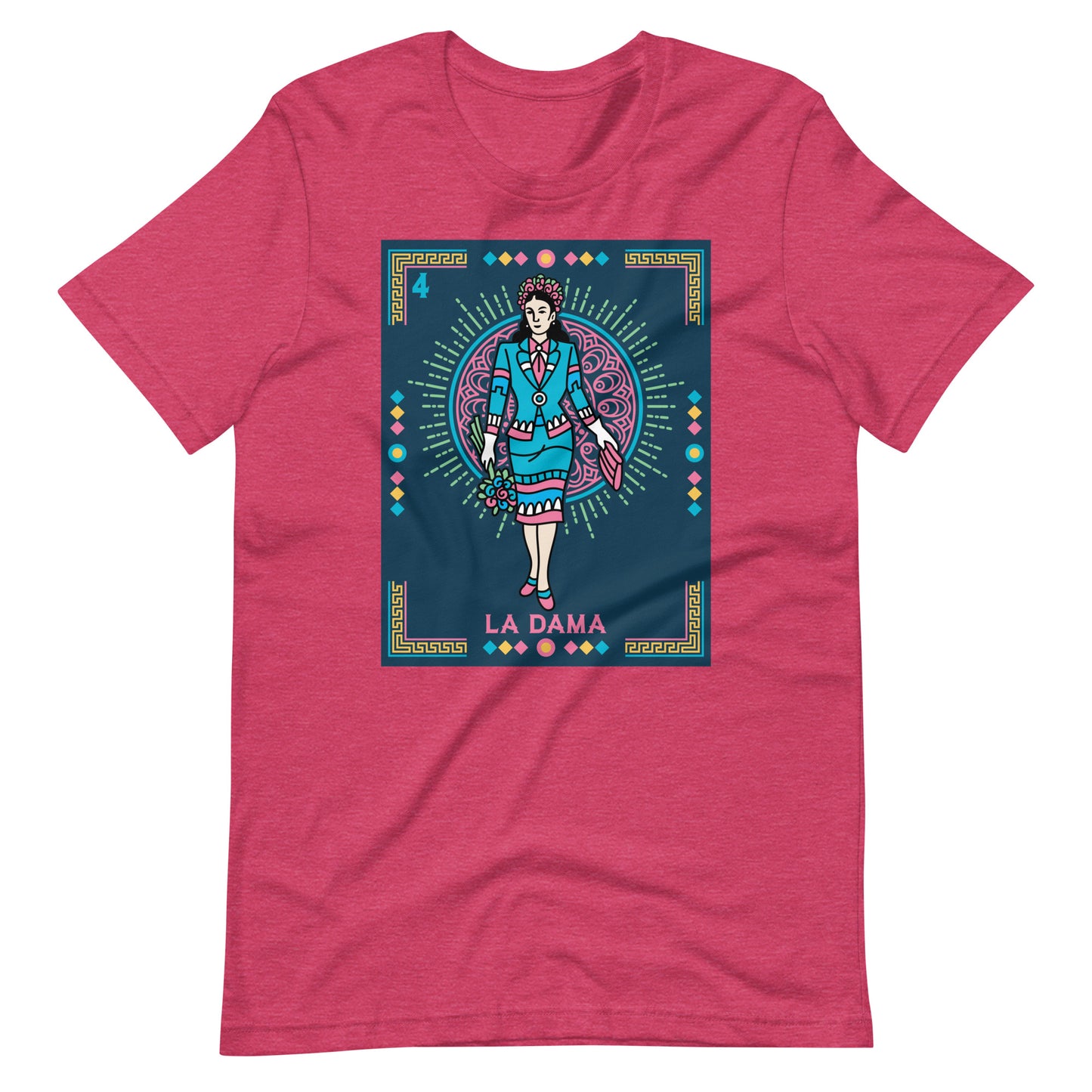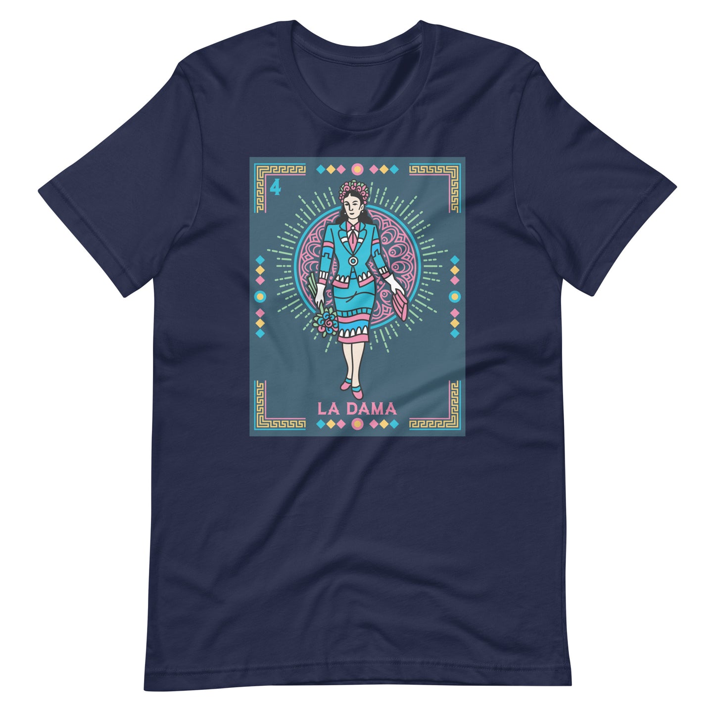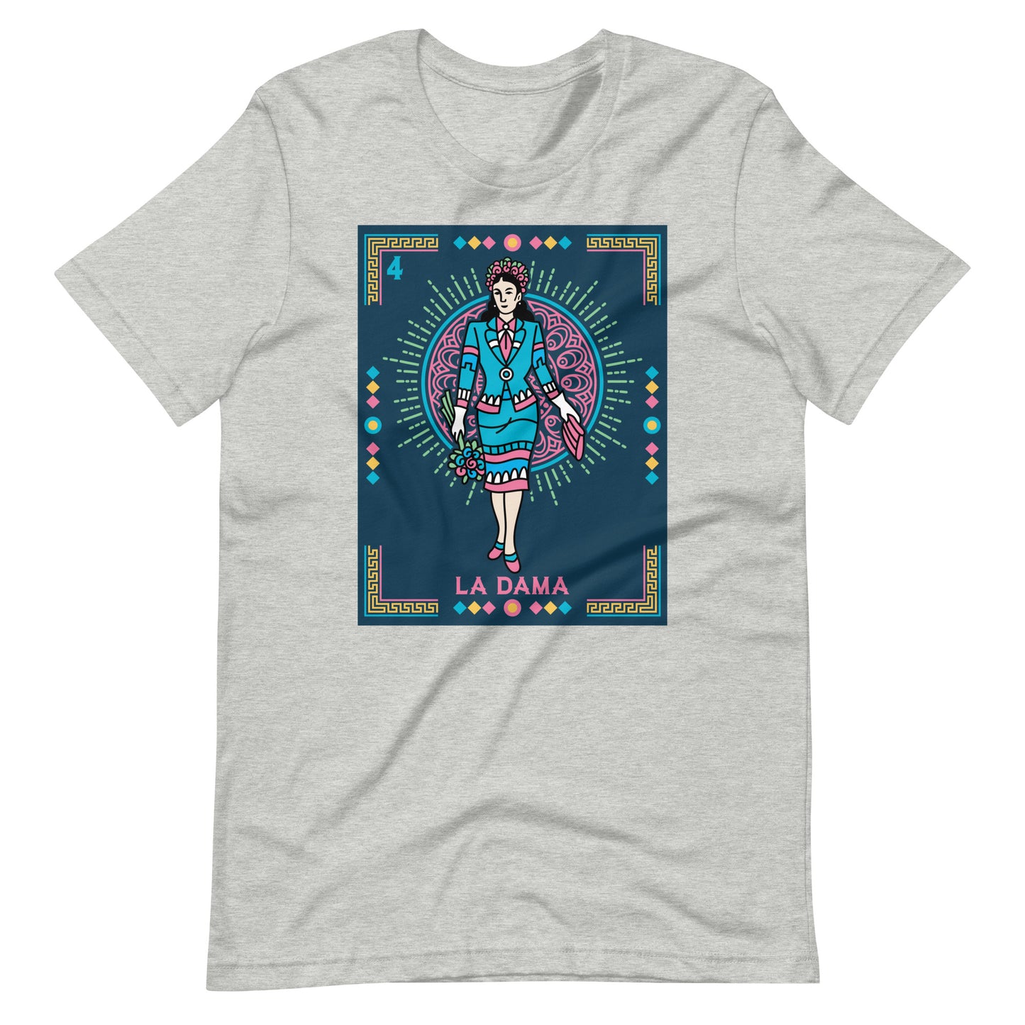 La Dama Mexican Loteria Unisex t-shirts are printed in USA