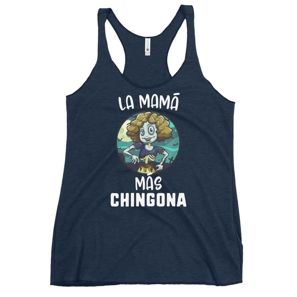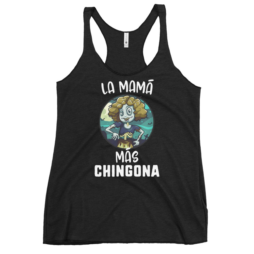 La Mama Mas Chingona Racerback Tank Tops are printed in USA