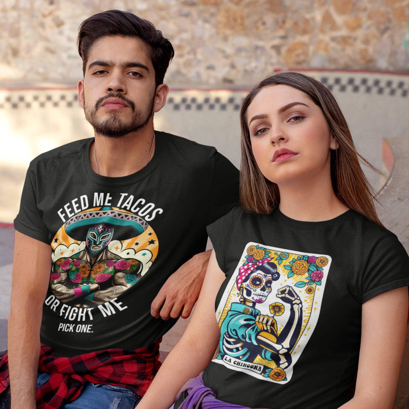 Our Mexican-themed clothing brings the fiesta to your closet — bold, funny, and full of cultura. Whether you're repping tamales, tacos, or abuela's chancla, we've got you covered (literally). Customers say it’s like wearing orgullo — and we agree. 100% satisfaction, 100% puro corazón.