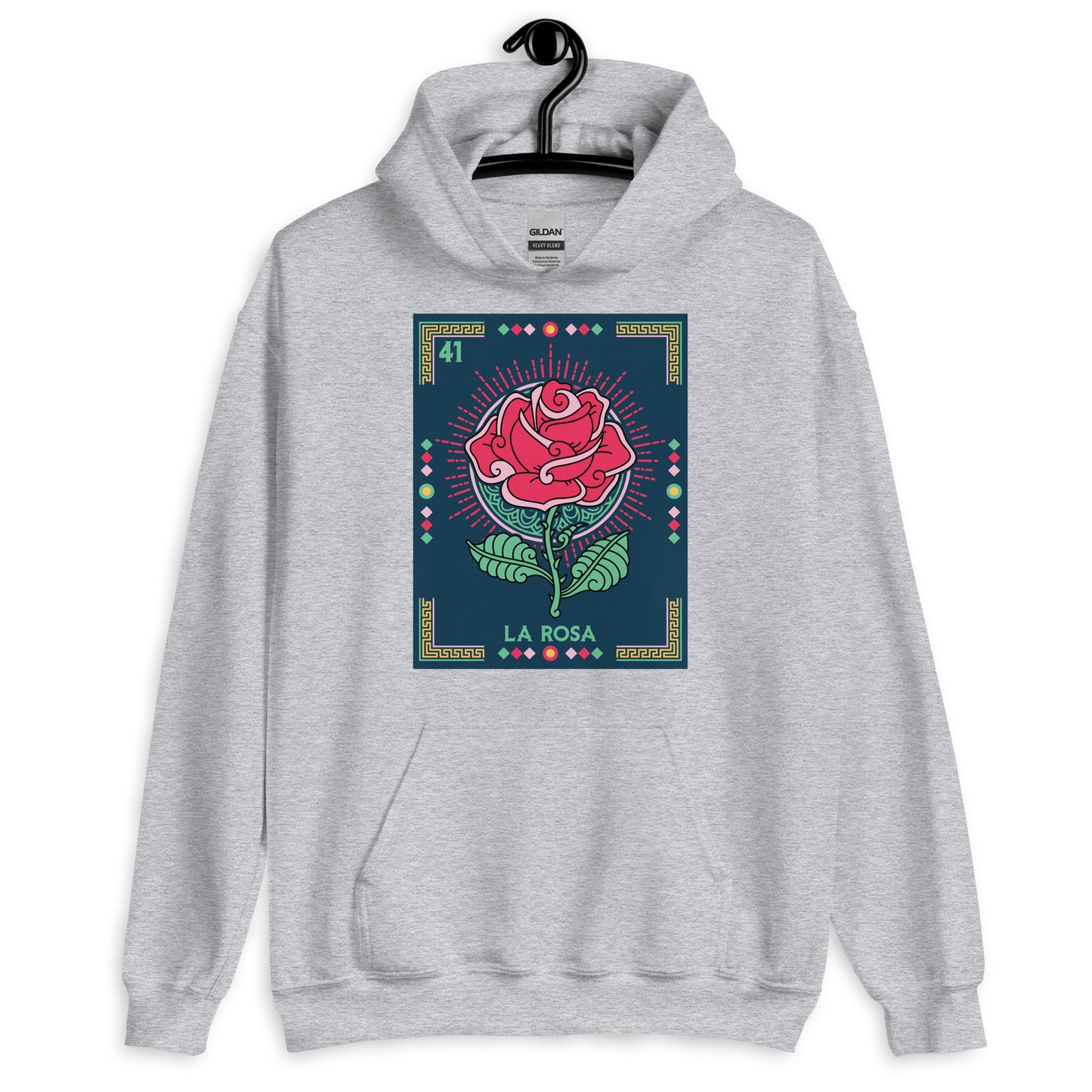 La Rosa Mexican Loteria Unisex Hoodies are printed in USA