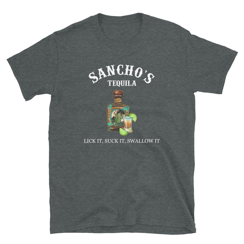 Sancho's Tequila Lick It Suck It Swallow It T-Shirts are printed in USA