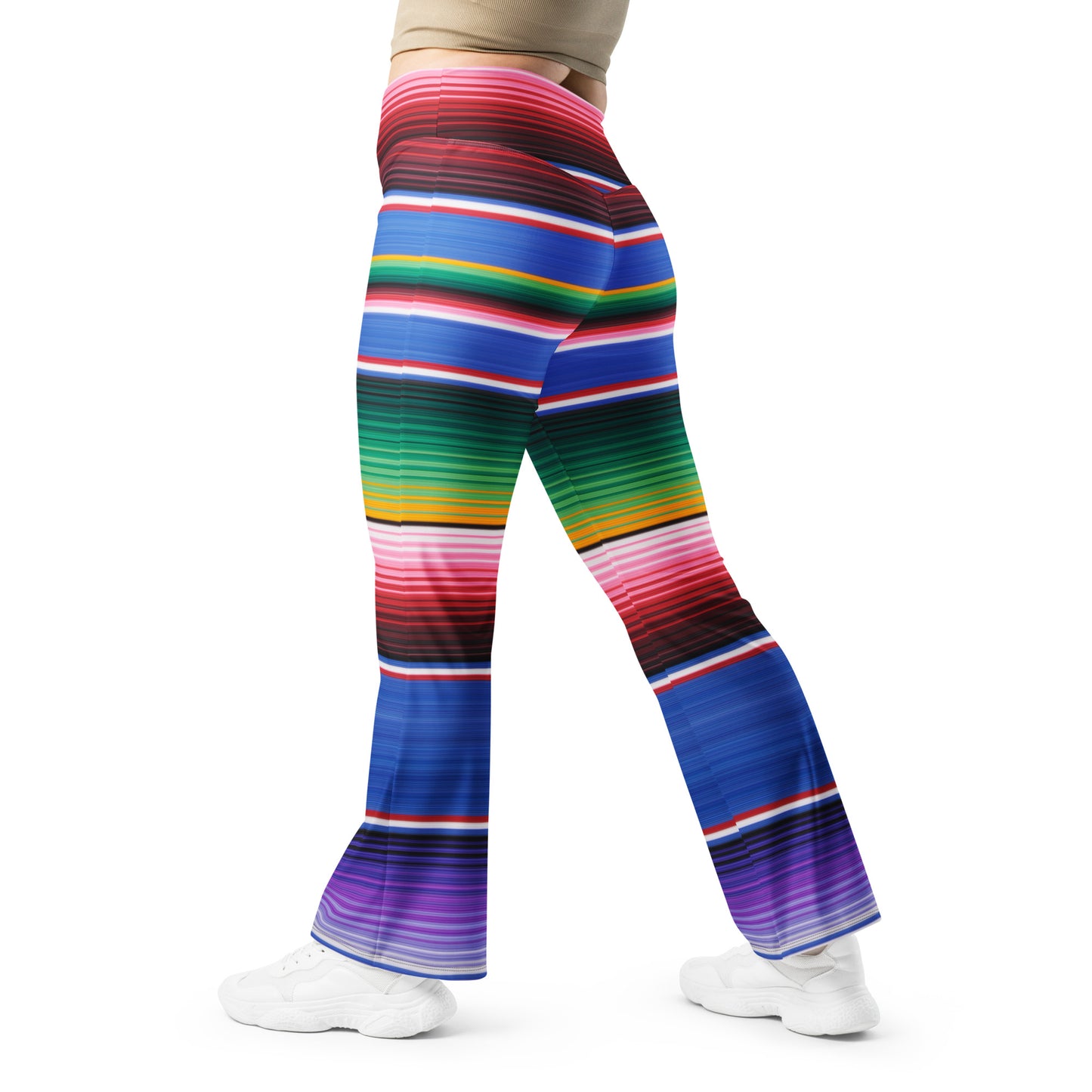 Shades of Purple Mexican Serape Printed Flare leggings are printed in USA
