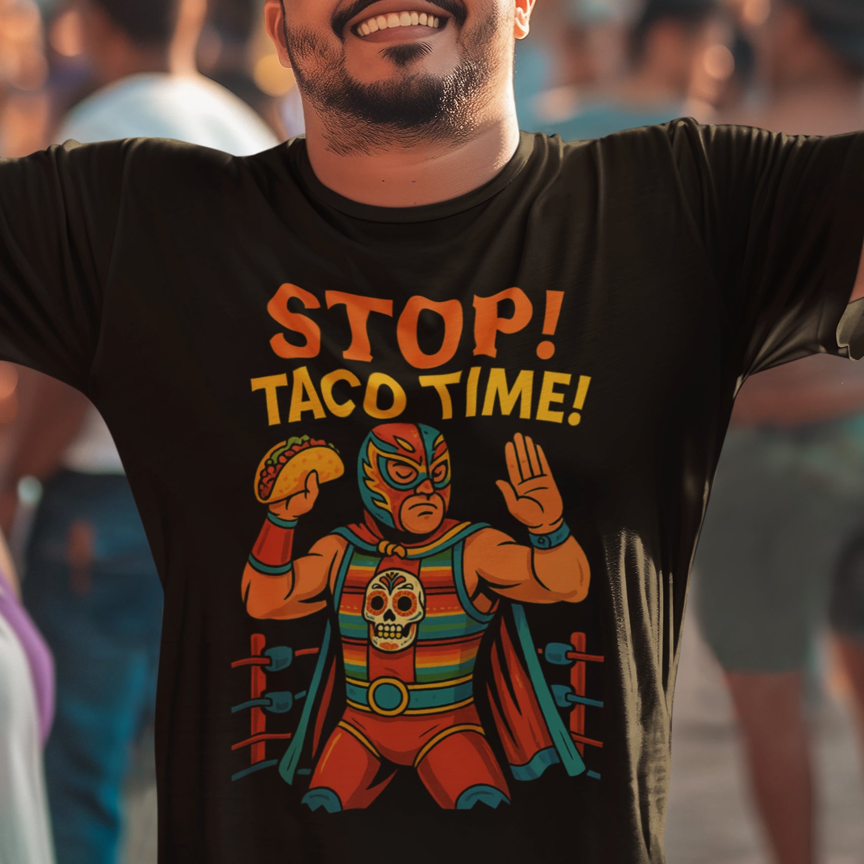 Stop! Taco Time! Fiesta Luchador T-Shirt for Taco Fans