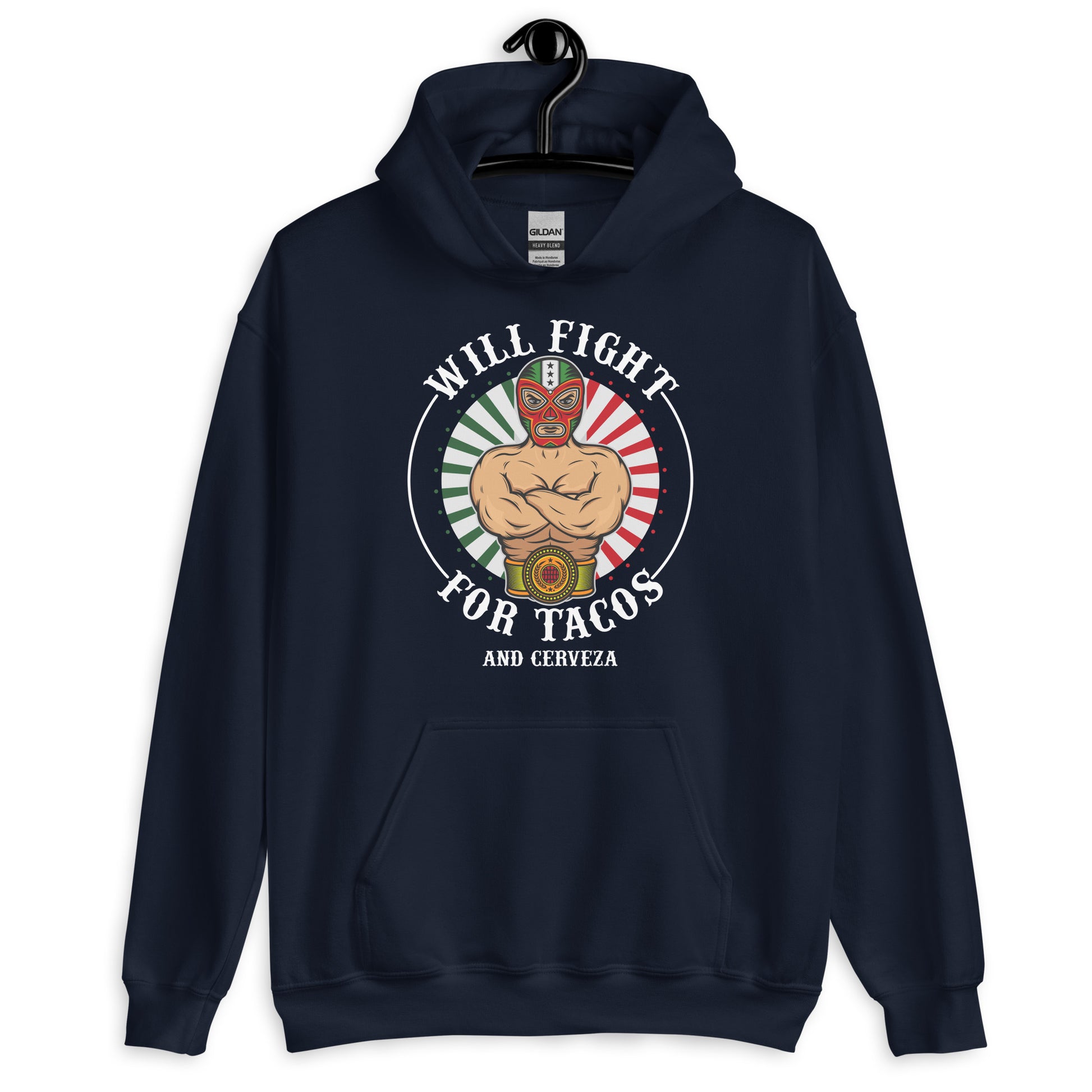 Will Fight for Tacos and Cerveza Luchador Unisex Hoodie